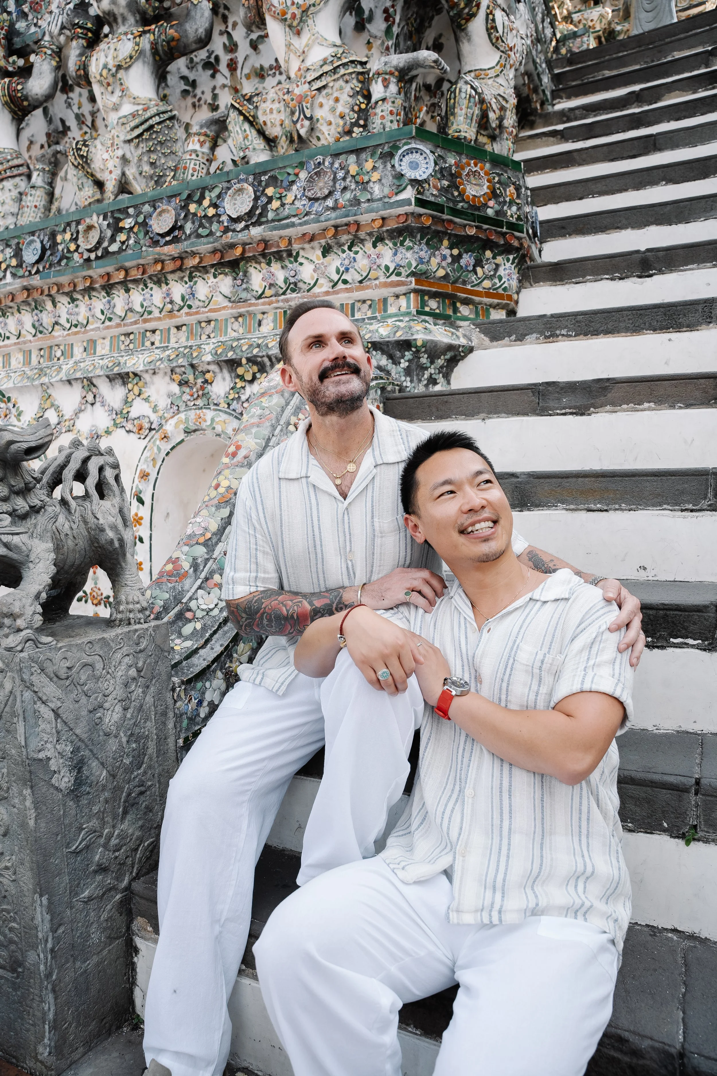 Born in China, Hao or Howie as we all know him emigrated to New Zealand in 2015 after spending 5 years working in Kuwait. He knew NZ would be his home as soon as he landed. Howie is an avid lover of animals, plants and yoga. He has an incredible sense of curiosity and a very cheeky sense of humour. Howie is the homemaker of the two and he is very proud of the life he has built in Auckland. Howie is looking forward to celebrating with all his adopted friends and family he has met here in New Zealand.